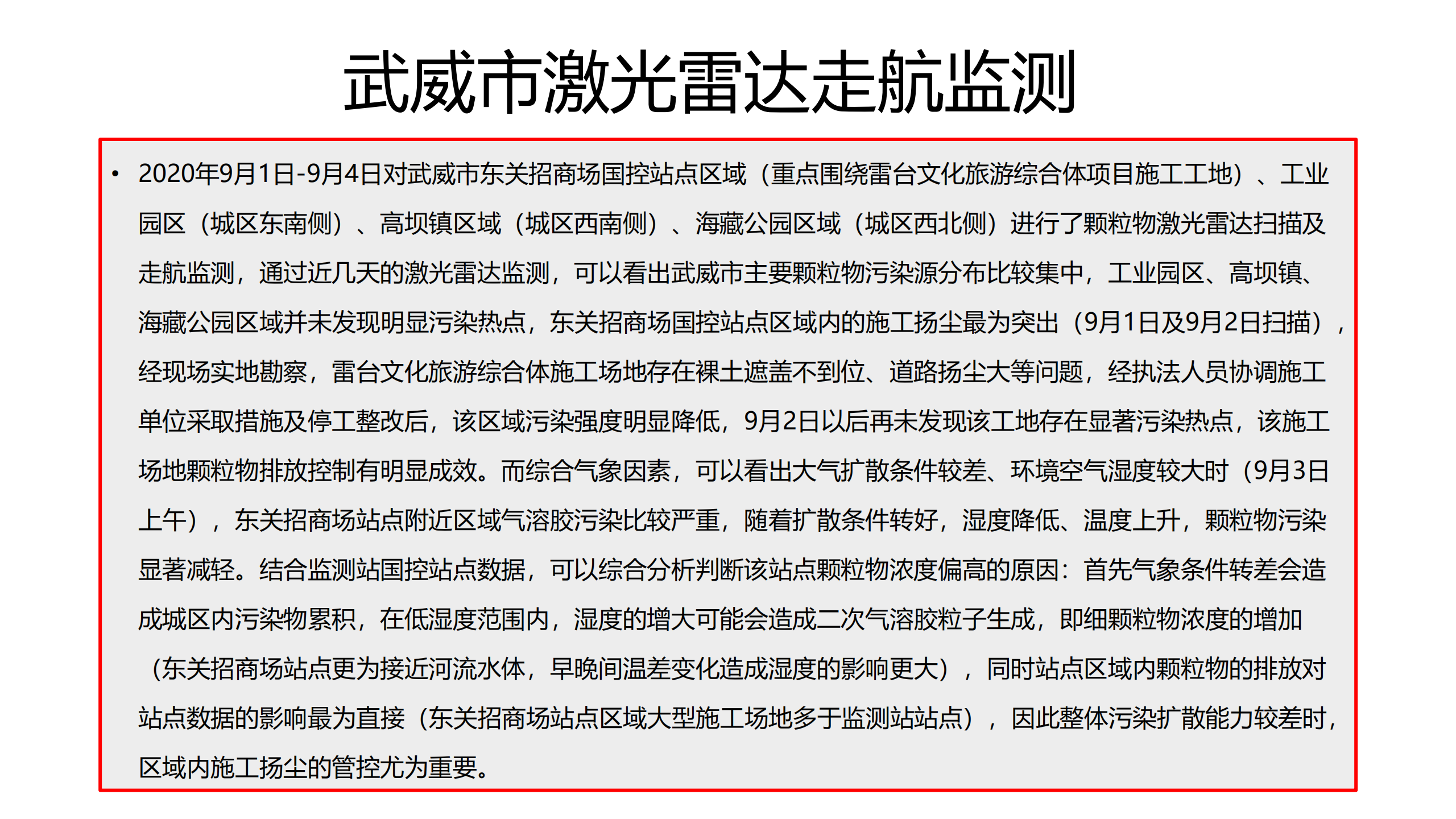 武威市大氣顆粒物激光雷達(dá)走航監(jiān)測(cè)報(bào)告