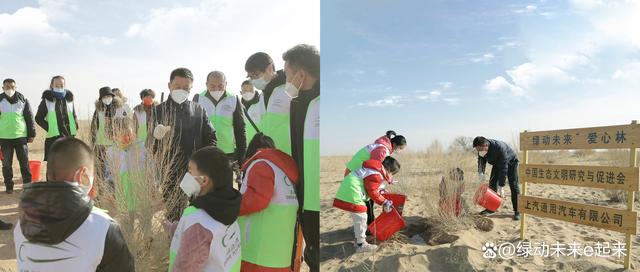 2022年12月24日,由上汽通用汽車和中國(guó)生態(tài)文明研究與促進(jìn)會(huì)以及武威市環(huán)境保護(hù)產(chǎn)業(yè)協(xié)會(huì)聯(lián)合發(fā)起的“綠動(dòng)未來(lái)”環(huán)保公益平臺(tái),發(fā)動(dòng)甘肅當(dāng)?shù)氐闹驹刚?,攜手治沙英雄、“全國(guó)勞動(dòng)模范”石述柱的傳人,在甘肅民勤縣騰格里沙漠種下10,000余棵梭梭樹(shù),落成又一片“綠動(dòng)未來(lái)愛(ài)心林”。